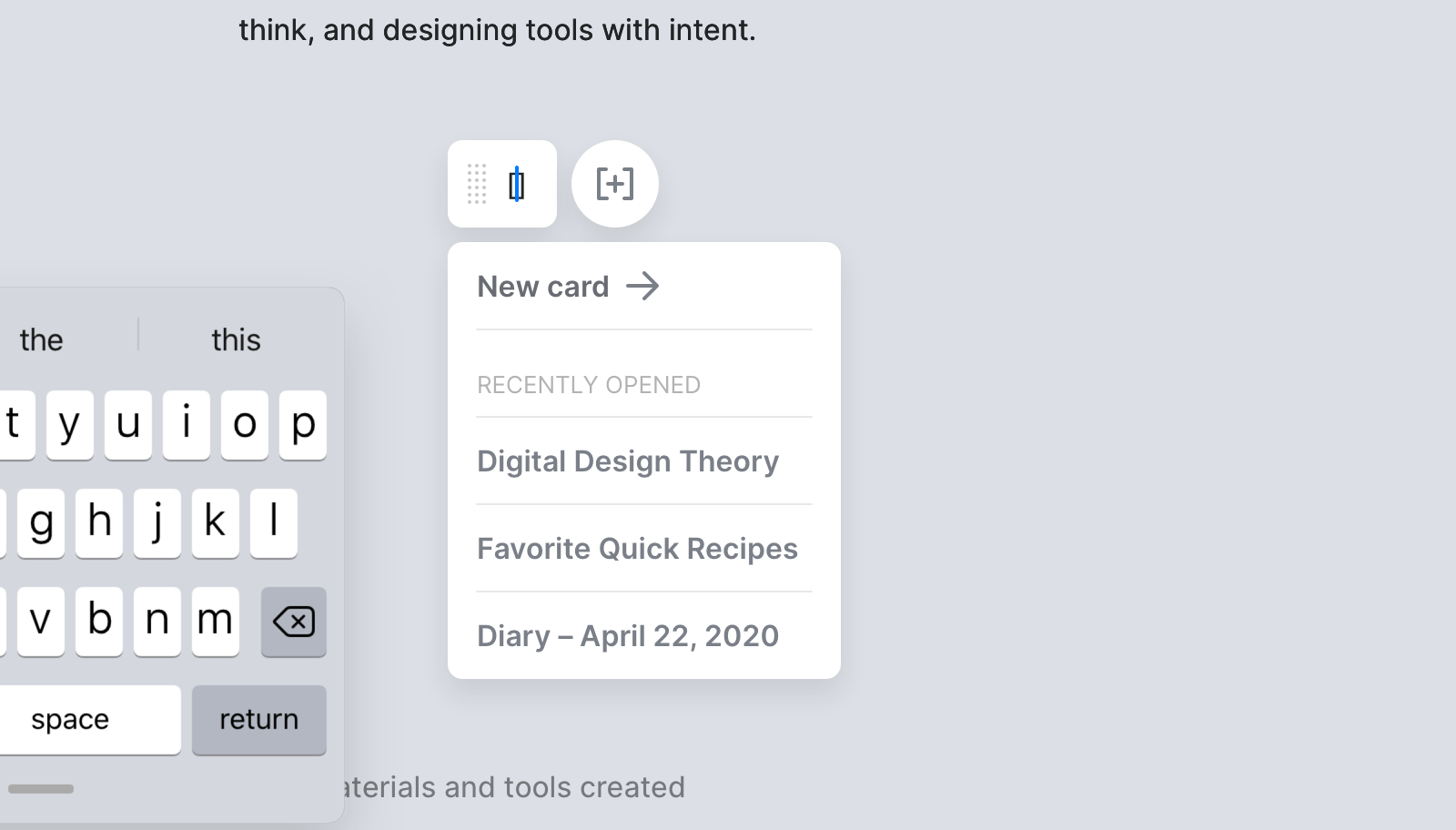 A designated space is within reach for quick access. See the recently opened cards and their connections.