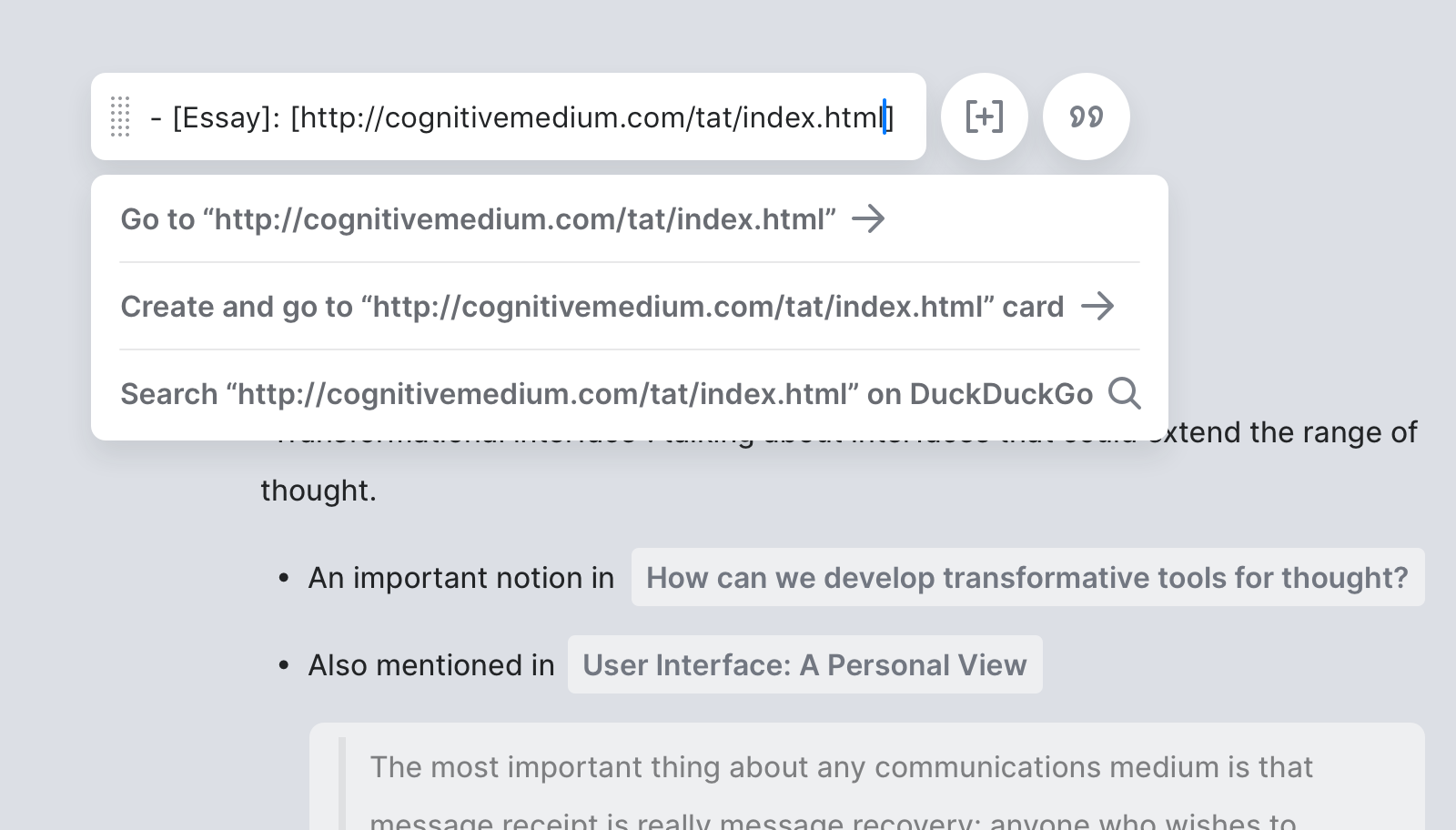 We constantly associate new information encountered with the knowledge in our mind, yet the browsing context has been kept separated from the thinking space context.